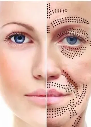 Phi-Ion-Behandlung basiert auf der Schaffung von Reihen von kleinen Punkten neben den Falten auf der Haut.